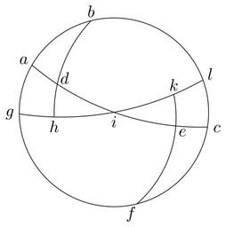 | Keywords: Coppernicus 021.svg de à ber die Kreisbewegungen der Weltkörper 21 File Kreisbewegungen-Coppernicus-0 djvu p 49 1879 w Nicolaus Copernicus File Coppernicus_021 png PD-old-100 De revolutionibus drawings LaTeX Source Code <syntaxhighlight lang latex > complile with »pdflatex« \documentclasstikz convert pdf2svg standalone \usepackage tkz-euclide \usetkzobj all \begin document \begin tikzpicture \tkzSetUpLineline width 0 4pt \tkzDefPoint 0 0 I \tkzDefPoint 104 2 B \tkzDefPoint 150 2 A \tkzDefPoint 181 2 G \tkzDefPoint -76 2 F \tkzDefPoint -9 2 C \tkzDefPoint 20 2 L \begin pgfinterruptboundingbox \tkzCircumCenter A I C \tkzGetPoint O1 \tkzCircumCenter G I L \tkzGetPoint O2 \end pgfinterruptboundingbox \tkzDefPointByrotation center O1 angle -14 I \tkzGetPoint D \tkzDefPointByrotation center O1 angle 14 I \tkzGetPoint E \tkzDefPointByrotation center O2 angle -12 I \tkzGetPoint H \tkzDefPointByrotation center O2 angle 12 5 I \tkzGetPoint K \begin pgfinterruptboundingbox \tkzCircumCenter B D H \tkzGetPoint O3 \tkzCircumCenter F E K \tkzGetPoint O4 \end pgfinterruptboundingbox \tkzDrawCircle I A \tkzDrawArccolor black O1 A C \tkzDrawArccolor black O2 G L \tkzDrawArccolor black O3 B H \tkzDrawArccolor black O4 F K \draw A + 150 0 2 node a ; \draw B + 90 0 2 node b ; \draw C + -9 0 2 node c ; \draw D + 40 0 2 node d ; \draw E + -45 0 2 node e ; \draw F + -120 0 25 node f ; \draw G + 181 0 2 node g ; \draw H + -90 0 2 node h ; \draw I + -90 0 2 node i ; \draw K + 90 0 2 node k ; \draw L + 40 0 2 node l ; \end tikzpicture \end document </syntaxhighlight> |
