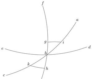 | Keywords: Coppernicus 047.svg de à ber die Kreisbewegungen der Weltkörper 47 File Kreisbewegungen-Coppernicus-0 djvu p 150 1879 w Nicolaus Copernicus File Coppernicus_047 png PD-old-100 De revolutionibus drawings LaTeX Source Code <syntaxhighlight lang latex > complile with »pdflatex« \documentclasstikz convert pdf2svg standalone \usepackage tkz-euclide \usetkzobj all \begin document \begin tikzpicture \tkzSetUpLineline width 0 4pt \pgfmathsetmacro \radius 3 ; \tkzDefPoint 2 4 2 7 A \tkzDefPoint 0 0 B \tkzDefPoint -3 35 -1 7 C \tkzDefPoint 3 3 0 65 D \tkzDefPoint -3 47 0 5 E \tkzDefPoint -0 35 4 05 F \tkzDefPoint -0 45 -2 X \tkzDefPoint -171 \radius I \begin pgfinterruptboundingbox \tkzCircumCenter A B C \tkzGetPoint ABC \tkzCircumCenter D B E \tkzGetPoint DBE \tkzCircumCenter F B X \tkzGetPoint FBX \end pgfinterruptboundingbox \tkzDefPointByrotation center ABC angle 9 B \tkzGetPoint I \tkzDefPointByrotation center ABC angle -9 5 B \tkzGetPoint K \tkzDefPointByrotation center FBX angle 6 B \tkzGetPoint G \tkzDefPointByrotation center FBX angle -6 5 B \tkzGetPoint H \tkzDrawArccolor black ABC C A \tkzDrawArccolor black FBX X F \tkzDrawArccolor black DBE E D \draw H tobend left 5 K ; \draw G tobend left 5 I ; \draw A + 60 0 2 node a ; \draw B + 125 0 2 node b ; \draw C + 180 0 2 node c ; \draw D + 0 0 2 node d ; \draw E + 180 0 2 node e ; \draw F + 90 0 2 node f ; \draw I + 0 0 2 node i ; \draw G + 180 0 2 node g ; \draw H + 0 0 2 node h ; \draw K + 135 0 2 node k ; \end tikzpicture \end document </syntaxhighlight> |