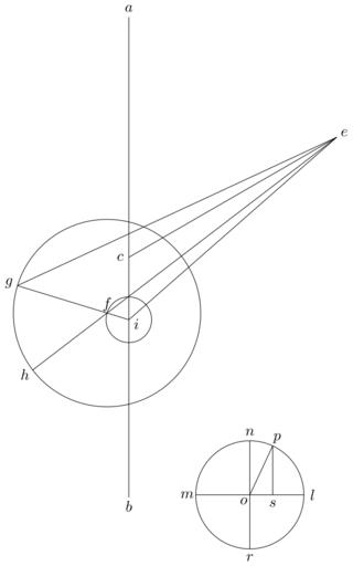 | Keywords: Coppernicus 121.svg de à ber die Kreisbewegungen der Weltkörper 121 File Kreisbewegungen-Coppernicus-0 djvu p 318 1879 w Nicolaus Copernicus File Coppernicus_121 png PD-old-100 De revolutionibus drawings LaTeX Source Code <syntaxhighlight lang latex > complile with »pdflatex« \documentclasstikz convert pdf2svg standalone \usepackage tkz-euclide \usetkzobj all \begin document \begin tikzpicture \tkzSetUpLineline width 0 4pt \pgfmathsetmacro \CA 5 52 ; \pgfmathsetmacro \OL 0 225 \CA ; \tkzDefPoint 90 \CA A \tkzDefPoint -90 \CA B \tkzDefPoint 0 0 C \tkzDefPoint 30 \CA E \tkzDefPoint -90 0 26 \CA I \coordinate F at I + 163 0 095 \CA ; \coordinate F2 at F + 0 0 39 \CA ; \tkzDefPoint -63 1 11 \CA O \coordinate L at O + 0 \OL ; \coordinate N at O + 90 \OL ; \coordinate P at O + 65 \OL ; \coordinate S at L- P ; \begin pgfinterruptboundingbox \tkzInterLC F E F F2 \tkzGetPoints H H2 \tkzInterLC I F F F2 \tkzGetPoints G2 G \tkzInterLC O L O L \tkzGetPoints M L \tkzInterLC N O O L \tkzGetPoints N R \end pgfinterruptboundingbox \tkzDrawCircle I F \tkzDrawCircle F F2 \tkzDrawCircle O L \draw A -- B ; \draw C -- E ; \draw E -- F ; \draw E -- G ; \draw E -- I ; \draw F -- H ; \draw G -- I ; \draw L -- M ; \draw N -- R ; \draw O -- P ; \draw P -- S ; \draw A + 90 0 2 node a ; \draw B + -90 0 2 node b ; \draw C + 180 0 2 node c ; \draw E + 30 0 2 node e ; \draw F + 90 0 2 node f ; \draw G + 163 0 2 node g ; \draw H + -150 0 2 node h ; \draw I + -30 0 2 node i ; \draw L + 0 0 2 node l ; \draw M + 180 0 2 node m ; \draw N + 90 0 2 node n ; \draw O + -135 0 2 node o ; \draw P + 60 0 2 node p ; \draw R + -90 0 2 node r ; \draw S + -90 0 2 node s ; \end tikzpicture \end document </syntaxhighlight> |