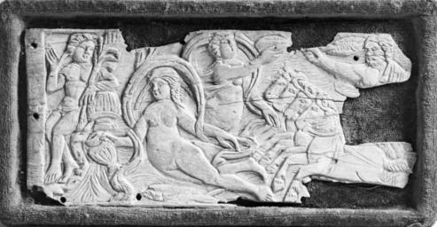 | Keywords: Coptic - Plaque with Allegorical Relief - Walters 711113.jpg Carved from the widest part of a hippopotamus tooth this panel was originally attached to a box or a piece of furniture The figures have not been identified fully but may represent a river goddess in the center with to the left a male personification of a spring pouring water from his inverted vase To the right Helios the sun god drives his horse-drawn chariot and salutes another female deity century 5 6 Late Antique hippopotamus ivory 4 1/16 x 9 1/16 in 10 3 x 23 x 0 1 cm accession number 71 1113 16472 Jack Pierpont Morgan New York by purchase Sale Parke-Bernet New York March 22 1944 no 76 Joseph Brummer New York 1944 by purchase Walters Art Museum 1944 by purchase Museum purchase 1944 Early Christian and Byzantine Art Baltimore Museum of Art Baltimore 1947 place of origin Egypt Walters Art Museum license Ancient Roman sculptures in the Walters Art Museum Coptic art in the Walters Art Museum Byzantine art in Egypt Media contributed by the Walters Art Museum needs artist review |