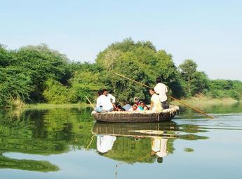 Keywords: coracle ride krishna river raichur karnataka india backwaters reflection