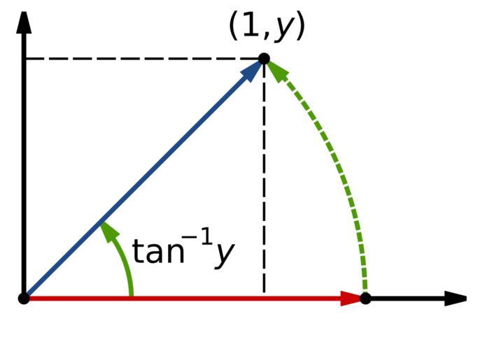 Keywords: CORDIC Vector Rotation 2.svg en A diagram showing how if a vector is rotated such that the y-component disappears the rotation amount is arctan y Own Inductiveload 2009-05-28 CORDIC