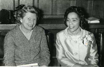 Keywords: people indoor blackandwhite black and white Coretta Scott King was a strong advocate for world peace, at some point in the 1960s she visited London and met with several peace organisations including WILPF. Here she is pictured with Labour M.P. Joyce Butler, who was a long term member of WILPF. Coretta Scott King was a strong advocate for world peace, at some point in the 1960s she visited London and met with several peace organisations including WILPF. Here she is pictured with Labour M.P. Joyce Butler, who was a long term member of WILPF.