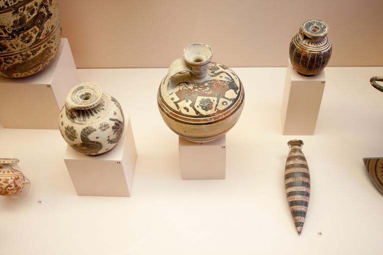 | Keywords: Corinthian pottery (720-550 BC).jpg  object history credit line accession number Photo by Szilas in the Archaeological Museum of Rhodes Commonist Ancient Greek pottery in the Archaeological Museum of Rhodes Attic red-figure pottery Ancient Greek pottery aryballoi |