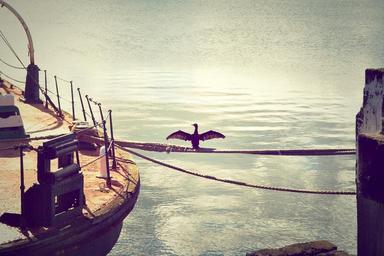 Keywords: cormorant sea raven mooring water harbour ropes wildlife animal bird fauna