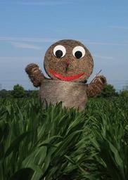 Keywords: corn cornfield straw woman of straw fig smilie friendly scarecrow field sky clouds