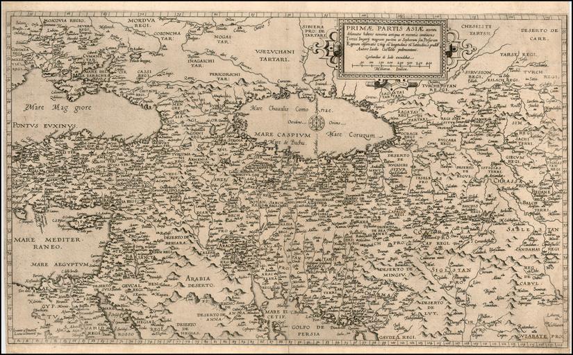 | Keywords: Cornelis De Jode. Primae Partis Asiae accurata delineatio. (Unrecorded Variant, 1578).jpg Cornelis De Jode Primae Partis Asiae accurata delineatio ¦ shows Cyprus Unrecorded Variant en Unrecorded variant edition of De Jode'shighly desireable map of the region bounded by the Black Sea and Mediterranean in the West and Afganistan and Central Asia in the East Cyprus is prominently shown in the Eastern Mediterranean The present example is identical to th 1579 edition of the map but also includes the name Meotis in the Mare de le Zabache Sea of Azov Palus Meotis was the ancient name for Sea of Azof with references to the name dating back to Strabo and before De Jode's was a contemporary of Ortelius His Speculum Orbis did not enjoy the same commercial success as Ortelius making his maps very scarce and highly desireable This map was engraved by the van Deutecum brothers and is based upon an earlier map by Gastaldi http //www raremaps com/gallery/detail/19881/Primae_Partis_Asiae_accurata_delineatioa_shows_Cyprus_Unrecorded_Variant/De 20Jode html www raremaps com References Al-Qasimi p 31 1578 Cornelis de Jode PD-Art-100 Cornelis de Jode 1578 maps Old maps of the Caucasus Old maps of the Middle East Old maps of Turkey 16th-century maps of Georgia Johannes van Deutecum |