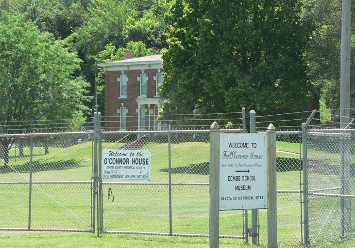 | Keywords: Cornelius O'Connor House museum signs.JPG Cornelius O'Connor House at southwest corner of F Avenue and Blyburg Road southeast of Homer in Dakota County Nebraska ; seen from the northeast with signs in the foreground The Italianate building was constructed ca 1875 It is listed in the National Register of Historic Places The house is currently maintained by the Dakota County Historical Society own Ammodramus 2010-07-09 Pictures by Ammodramus Taken with Panasonic Lumix DMC-FZ20 Cornelius O'Connor House |
