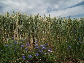 Keywords: cornfield field cereals grain ear cornflower blue summer clouds cereal
