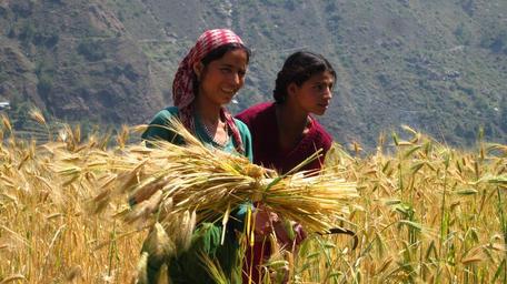 Keywords: cornfield field workers work field girl harvest landscape wheat harvest