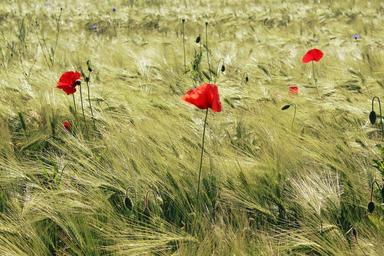 Keywords: cornfield poppies red blossom bloom flower golden cereals mohngewaechs agriculture poppy summer field gold wheat field spike poppy flower bloom arable wheat nature nutrition landscape golden yellow food