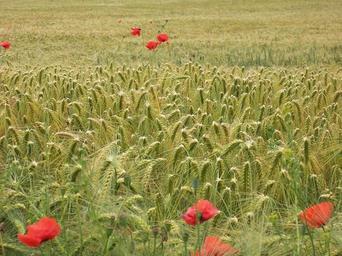 Keywords: cornfield summer grain cereals wheat field arable sun green poppy red poppy flower