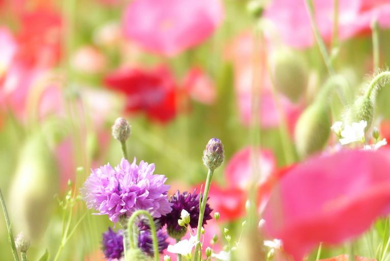 Keywords: cornflower flowers purple in the early summer poppy natural landscape