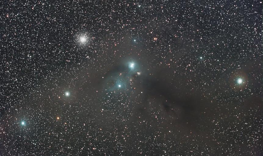 | Keywords: texture Apart from a few mistakes, I'm very happy with this 2.5 hour session on this stunning region of deep space! Easily one of my favourite southern sky regions - it's the complete package! Away from the flashy and crowded milky way regions, the Corona Australis Molecular cloud is a beautiful mix of dark and reflection nebulas. The two brighter blue stars in the middle are both binary stars, but you can only tell by the double diffraction spikes on the lower one as they are so close together. The brightest binary is a variable star system which means it dims and brightens over weeks and months. They are young stars, still collecting mass. The beautiful globular cluster above it makes the whole area quite compelling! Celestron 9.5" / 30 x 5m / QHY12 RBG CCD / UHC Filter / PHD2 Guiding / Hyperstar3 F2 reducer Acquired and stacked in Nebulosity Post processing in PixInsight and Photoshop Apart from a few mistakes, I'm very happy with this 2.5 hour session on this stunning region of deep space! Easily one of my favourite southern sky regions - it's the complete package! Away from the flashy and crowded milky way regions, the Corona Australis Molecular cloud is a beautiful mix of dark and reflection nebulas. The two brighter blue stars in the middle are both binary stars, but you can only tell by the double diffraction spikes on the lower one as they are so close together. The brightest binary is a variable star system which means it dims and brightens over weeks and months. They are young stars, still collecting mass. The beautiful globular cluster above it makes the whole area quite compelling! Celestron 9.5" / 30 x 5m / QHY12 RBG CCD / UHC Filter / PHD2 Guiding / Hyperstar3 F2 reducer Acquired and stacked in Nebulosity Post processing in PixInsight and Photoshop |