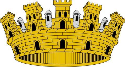 Keywords: Corona mural - ciudad.svg Corona mural de ciudad Lienzo de muralla con diez puertas cinco visibles realzado de ocho torres almenadas cinco visibles unidas hasta la mitad de su altura por un muro sin almenas con garitas de plata entre las torres http //www scgenealogia org/heraldica/heraldcivic htm Introducción general de heráldica cívica Own 2007-12-10 HansenBCN 40px SVG coat of arms elements - mural crowns