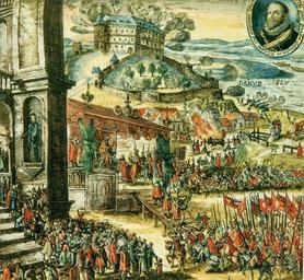 | Keywords: Coronation of Matthias II in Pozsony.jpg object history credit line accession number own scanned by Szilas from A magyar Szent Korona by Tóth Endre Szelényi Károly Kossuth 2000 Budapest PD-old-100 Matthias Holy Roman Emperor Coronations in Bratislava |