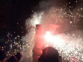| Keywords: Correfocs (literally in English "fire-runs") are among the most striking features present in Catalan festivals. In the correfoc, a group of individuals will dress as devils and light fireworks - fixed on devil's pitchforks or strung above the route. Dancing to the sound of a rhythmic drum group, they set off their fireworks among crowds of spectators. The spectators that participate dress to protect themselves against small burns and attempt to get as close as possible to the devils... running with the fire. Other spectators will watch from 'safe' distances, rapidly retreating as necessary. culture catalan correfoc terrassa països catalans fmterrassa2016 |