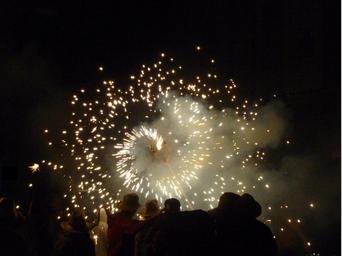 | Keywords: Correfocs (literally in English "fire-runs") are among the most striking features present in Catalan festivals. In the correfoc, a group of individuals will dress as devils and light fireworks - fixed on devil's pitchforks or strung above the route. Dancing to the sound of a rhythmic drum group, they set off their fireworks among crowds of spectators. The spectators that participate dress to protect themselves against small burns and attempt to get as close as possible to the devils... running with the fire. Other spectators will watch from 'safe' distances, rapidly retreating as necessary. popular cultura correfoc terrassa fmterrassa2016 |