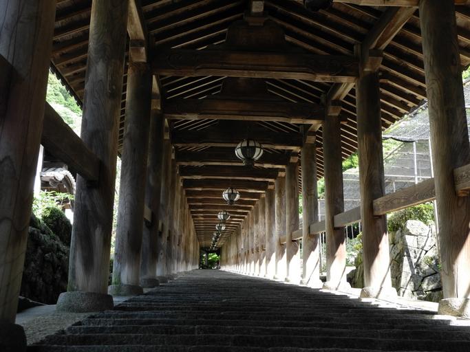 Keywords: corridor hall stone steps stairs pillars beams wooden enclosure outdoor open walkway japan hasedera perspective