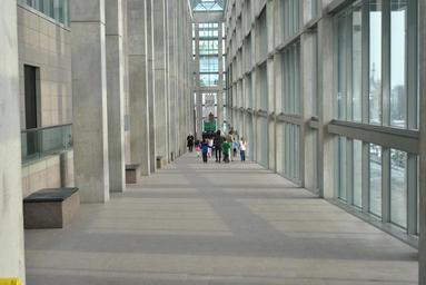 Keywords: corridor massive interior hall hallway tall modern walls glass cement building art gallery ottawa canada columns slope