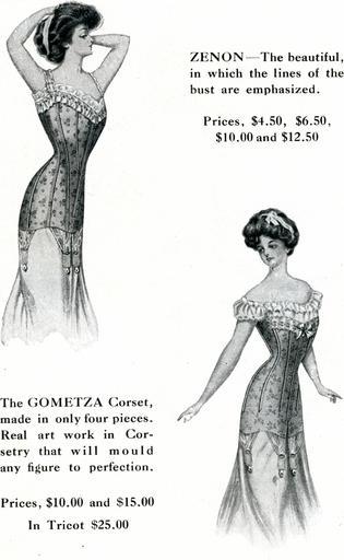 Keywords: CorsetStyles1909-1910p04.png en ZENON ”The beautiful in which the lines of the bust are emphasized <br>Prices 4 50 6 50 10 00 and 12 50<br>The GOMETZA Corset made in only four pieces Real art work in Corsetry that will mould any figure to perfection <br>Prices 10 00 and 15 00 In Tricot 25 00 Corset Styles 1909-1910 Woolnough-Corsetiers 1909 PD PD-Art Corset Styles 1909-1910 |