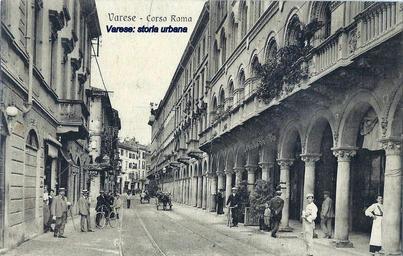 | Keywords: varese corso roma corsoroma corso aldo moro corsoaldomoro road outdoor architecture building structure infrastructure building Al centro, sulla sinistra l'imbocco del vicolo che porta alla piazza dove si affaccia la chiesa di S. Giuseppe. Sul fondo è visibile la piazza Porcari con casa Carantani (rimodernata nel 1809 dall'arch. Lorenzo Zuccotti). Il lato destro presenta intatta tutta la cortina di edifici progettati dall'ing. Paolo Cantù (1889). Al centro, sulla sinistra l'imbocco del vicolo che porta alla piazza dove si affaccia la chiesa di S. Giuseppe. Sul fondo è visibile la piazza Porcari con casa Carantani (rimodernata nel 1809 dall'arch. Lorenzo Zuccotti). Il lato destro presenta intatta tutta la cortina di edifici progettati dall'ing. Paolo Cantù (1889). |