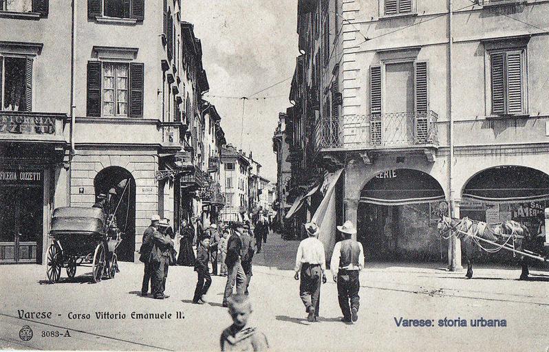 Keywords: varese corso vittorio emanuele ii corsovittorioemanueleii piazza porcari piazzaporcari corso giacomo matteotti corsogiacomomatteotti piazza monte grappa piazzamontegrappa road vehicle bike outdoor architecture Al centro corso Vittorio Emanuele II (ora corso Matteotti) visto da piazza Porcari (ora piazza Monte Grappa). A sinistra casa Cova (demolita nella seconda metà degli anni '30 per fare posto al palazzo R.A.S., ing. Mario Loreti), a destra la casa con portici retti da capitelli tardo gotici sostituita nel 1929 da palazzo Mascardi/Pini (ing. Camillo Lucchina). Al centro corso Vittorio Emanuele II (ora corso Matteotti) visto da piazza Porcari (ora piazza Monte Grappa). A sinistra casa Cova (demolita nella seconda metà degli anni '30 per fare posto al palazzo R.A.S., ing. Mario Loreti), a destra la casa con portici retti da capitelli tardo gotici sostituita nel 1929 da palazzo Mascardi/Pini (ing. Camillo Lucchina).
