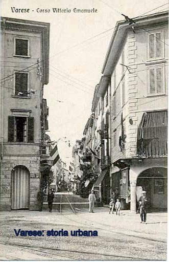 Keywords: A sinistra casa Cova (demolita per fare spazio al palazzo R.A.S., ing. Mario Loreti), al centro corso Vittorio Emanuele II (ora corso Matteotti) a destra la casa sostituita nel 1929 da palazzo Mascardi/Pini (ing. Camillo Lucchina). varese corsovittorioemanueleii piazzamontegrappa corsogiacomomatteotti piazzaporcari
