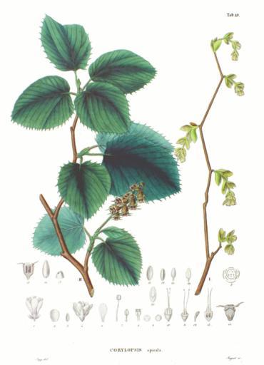| Keywords: Corylopsis spicata SZ19.png Plate from book Flora Japonica Sectio Prima Tafelband 1870 Philipp Franz von Siebold and Joseph Gerhard Zuccarini see http //www biolib de PD-old Corylopsis spicata Flora Japonica Hamamelidaceae botanical illustrations |