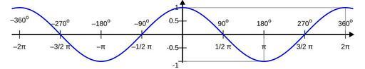 | Keywords: Cos proportional.svg Plot of cos x with proportional scales and the gnuplot source Own pl User Olaf <pre> set terminal svg enhanced font Arial 10 size 658 125 set output 'c \temp\cos svg' set border 0 set style arrow 2 head filled lw 2 size 0 15 30 set style arrow 4 nohead set samples 1000 unset key set xtics axis ÔÇô2¤Ç -2 pi ÔÇô3/2 ¤Ç -1 5 pi ÔÇô¤Ç -pi ÔÇô1/2 ¤Ç -pi/2 1/2 ¤Ç pi/2 ¤Ç pi 3/2 ¤Ç 1 5 pi 2¤Ç 2 pi scale 1 set x2tics axis ÔÇô360 o -2 pi ÔÇô270 o -1 5 pi ÔÇô180 o -pi ÔÇô90 o -pi/2 90 o pi/2 180 o pi 270 o 1 5 pi 360 o 2 pi scale 1 offset 0 2 7 set ytics axis -1 -0 5 0 5 1 set style line 3 lw 1 lt 5 lc rgb black set style line 1 lc rgb blue lw 2 set arrow arrowstyle 2 from -2 pi-0 3 0 to 2 pi+0 3 0 set arrow arrowstyle 2 from 0 -1 05 to 0 1 25 set arrow arrowstyle 4 linestyle 0 from 0 1 to 2 pi 1 set arrow arrowstyle 4 linestyle 0 from 2 pi 1 to 2 pi 0 set arrow arrowstyle 4 linestyle 0 from 0 -1 to pi -1 set arrow arrowstyle 4 linestyle 0 from pi -1 to pi 0 plot -2 pi-0 3 2 pi+0 3 -1 1 cos x linestyle 1 set output unset arrow unset label </pre> SVG trigonometry Cosine function |
