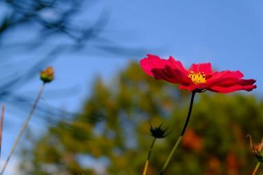 Keywords: cosmea blossom bloom red schnittblume pasture park