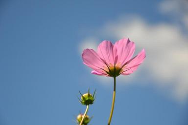 Keywords: cosmea flower plant cosmos flowers summer petal summer flowers nature garden flower dacha beautiful macro bud pink flora botanica stem closeup sky clouds