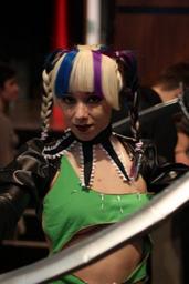 | Keywords: Cosplay at Comicdom 2012 in Athens, Greece 02.JPG en A cosplayer identified as Sofia Lucifairy wearing a self-made costume representing the Tira character from Soulcalibur V poses for the photojournalist's camera at Comicdom 2012 an annual cosplay competition held at Hellenic American Union in Kolonaki Athens Greece Photo donated to the public domain free of copyright restrictions Journalistic use For Journalistic use 2012-03-31 18 10 41 own Cogiati cc-zero consent public place Canon EF 50mm f/2 5 Compact Macro Canon EOS 60D Cosplay of Tira Soulcalibur Green clothing female Cosplay at Comicdom 2012 Taken with Canon EOS 60D Taken with Canon EF 50mm F2 5 Compact Macro |