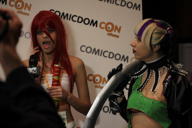 Keywords: Cosplay at Comicdom 2012 in Athens, Greece 19.JPG en A cosplayer identified as Sofia Lucifairy wearing a self-made costume representing the Tira character from Soulcalibur V grants an interview to journalists from the MTV television channel and also poses for other the photojournalists' cameras at Comicdom 2012 an annual cosplay competition held at Hellenic American Union in Kolonaki Athens Greece Photo donated to the public domain free of copyright restrictions Journalistic use For Journalistic use 2012-03-31 18 14 41 own Cogiati cc-zero consent public place Interviews with cosplayers at Comicdom 2012 Cosplay of Tira Soulcalibur Green clothing female Taken with Canon EOS 60D |