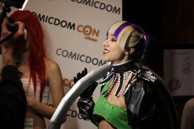 | Keywords: Cosplay at Comicdom 2012 in Athens, Greece 31.JPG en A cosplayer wearing a self-made costume representing the Tira character from Soulcalibur V grants an interview to journalists from the MTV television channel and also poses for other the photojournalists' cameras at Comicdom 2012 an annual cosplay competition held at Hellenic American Union in Kolonaki Athens Greece Photo donated to the public domain free of copyright restrictions Journalistic use For Journalistic use 2012-03-31 18 15 10 own Cogiati cc-zero consent public place Canon EF 50mm f/2 5 Compact Macro Canon EOS 60D Cosplay of Tira Soulcalibur Uploaded with UploadWizard Green clothing female Cosplay at Comicdom 2012 Cosplay in Greece Taken with Canon EOS 60D |