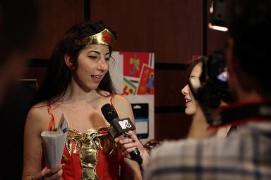 | Keywords: Cosplayers at Comicdom 2012 in Athens, Greece grant interviews to the MTV television channel 24.JPG en Cosplayers at Comicdom 2012 an annual public event held at Hellenic American Union in Kolonaki Athens Greece grant interviews to journalists from the MTV television channel 2012-03-31 18 33 03 own Cogiati cc-zero consent public place Cosplay of Wonder Woman and her cast Interviews with cosplayers at Comicdom 2012 Taken with Canon EOS 60D Taken with Canon EF 50mm F2 5 Compact Macro | ||||