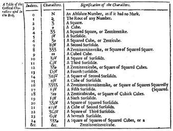 | Keywords: Cossical characters.png s form 0 to 24 First known use of Zenzizenzizenzizenzike 2011-12-12 A compleat body of arithmetic in four books Wherein the whole nature of numbers with their simple and comparative elements in all the parts of arithmetick are plainly declared and fully handled Every part explain'd by necessary rules cases theorems questions observations and variety of operations To every part is added excellent rules of practice With many large and exact tables of all sorts of coins weights measures c ancient and modern in most countries reduced to our own London Printed for T Newborough etc Jeake Samuel PD-old-100 Uploaded with UploadWizard Tables information |