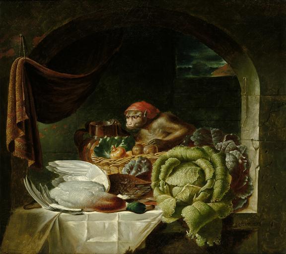 | Keywords: Costar Küchenstilleben 1875.jpg Küchenstilleben mit Rhesusäffchen oil on canvas 45 5 x 51 cm E Costar 1875 signature / date lower right http //www bassenge com still-life žE Costar PD-old-100 Still life paintings of food Macaca mulatta in art 1875 paintings Paintings of monkeys 1870s still-life paintings Still life paintings of vegetables 19th-century paintings location missing Paintings with signatures lower right Animals with human clothing Still-life paintings of living animals Paintings of baskets Images from Galerie Bassenge Dead birds in art |