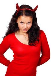 Keywords: costume cute demon devil evil female girl halloween hell horn hot isolated naughty people red woman young