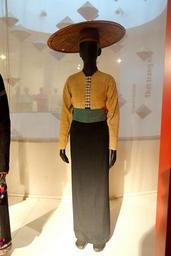 | Keywords: Costume, Thai Trang, Son La, 1980, shirt and skirt in handmade cotton, silk belt, silver fastener in shape of a butterfly - Vietnamese Women's Museum - Hanoi, Vietnam - DSC03849.JPG en Exhibit in the Vietnamese Women's Museum Hanoi Vietnam Photography was permitted in the museum without restriction 2014-08-04 03 12 51 own Daderot other versions cc-zero Clothing in the Vietnamese Women's Museum Uploaded with UploadWizard Tai peoples | ||||