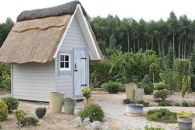 Keywords: cottage cottage-garden bower architecture forest shrubbery white house vegetation nature green garden tree straw roof gardening rest park