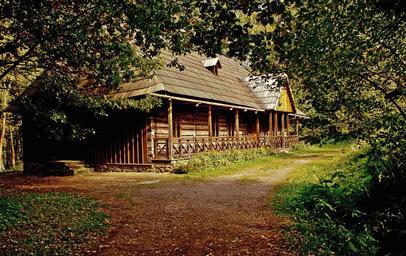 Keywords: cottage house old house wooden house monument village the roof of the railing posts porch shingle