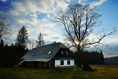 Keywords: cottage the vysočina region tree backlight sun nature sunset light shading clouds twilight evening