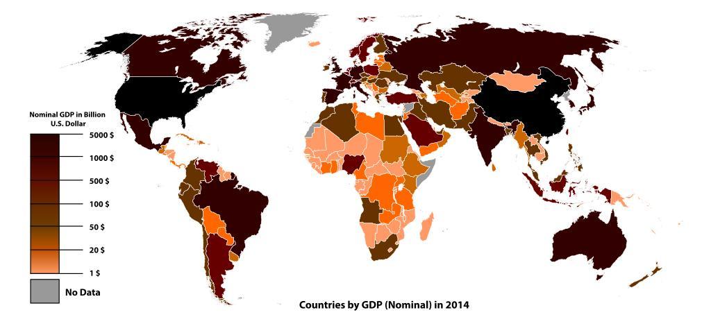 | Keywords: Countries by GDP (Nominal) in 2014.svg en Countries by GDP Nominal in 2014 based on data from the http //databank worldbank org/data/download/GDP pdf World Bank 2015-09-19 own ; Used a blank map from https //upload wikimedia org/wikipedia/commons/0/03/BlankMap-World6 svg here <strong><span style font-family Hobo Std; font-size 13 6px; text-shadow Silver 0 1em 0 1em 0 08em;class texhtml ><font color 088A08 >Ali Zifan</font></span></strong> other versions cc-zero Uploaded with UploadWizard |