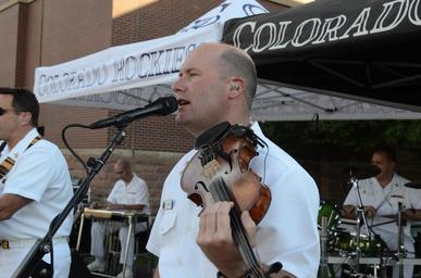 | Keywords: bluegrass fiddle pedal steel guitar rockies navy band outdoor 110909-HG258-N-036 DENVER (September 9, 2011) Chief Musician Pat White plays fiddle during Country Current's performance outside of Coors Field in Denver, Colorado prior to the Major League Baseball game featuring the Colorado Rockies and Cincinnati Reds. Country Current is on the third day of their 17 day 2011 National Tour. (U.S. Navy Photo by MUC Stephen Hassay) 110909-HG258-N-036 DENVER (September 9, 2011) Chief Musician Pat White plays fiddle during Country Current's performance outside of Coors Field in Denver, Colorado prior to the Major League Baseball game featuring the Colorado Rockies and Cincinnati Reds. Country Current is on the third day of their 17 day 2011 National Tour. (U.S. Navy Photo by MUC Stephen Hassay) |