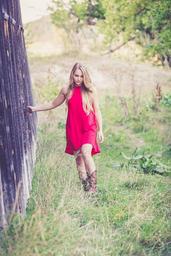 Keywords: country girl red dress nature outdoor summer woman countryside grass female