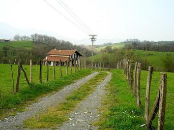 Keywords: country lane dirt road nature forest house home grass path