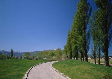 Keywords: tree road forest green path sun spring scene way yellow summer park grass sky lane light pine dawn sunlight sunbeam foliage sunrise day leaf deciduous bright sunny environmental scenery morning woods season area
