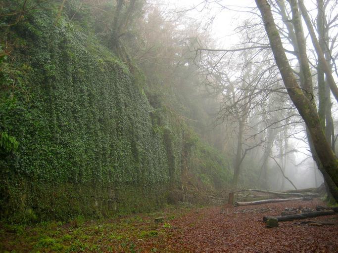 Keywords: landscape fog foggy forest trees woods sky cliff formation plants moss nature outside