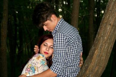Keywords: couple love romance tree forest in the evening